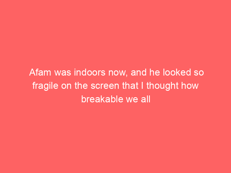 Afam was indoors now, and he looked so fragile on the screen that I thought how breakable we all are, and how easily we forget how breakable we are.